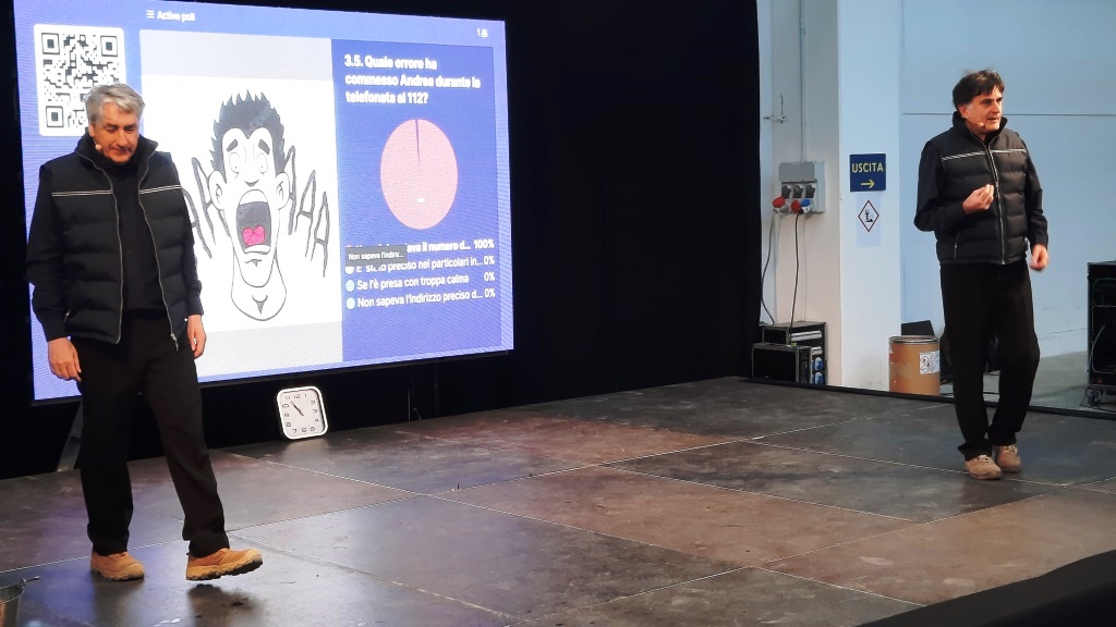 Si è trattato di sette atti teatrali, volati via in circa 90 minuti, che lasciano un segno in tutti i partecipanti, coinvolti attivamente attraverso un’app che consentiva di intervenire rispondendo alle domande pertinenti.