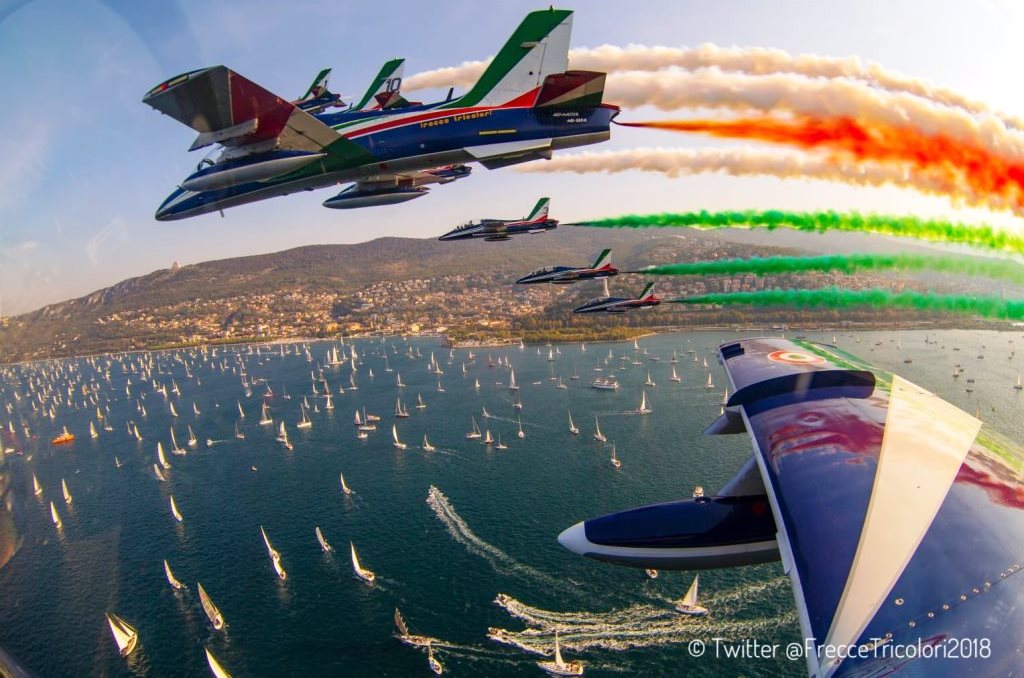 Probabilmente con una copertura mediatica così importante, le scene che hanno avuto maggior importanza sono state quelle delle Frecce Tricolori che con i loro fumi colorati non si sono limitati a sorvolare il golfo sopra alle migliaia di barche, bensì hanno eseguito una serie di evoluzioni che hanno lasciato tutti estasiati e ora stanno facendo il giro del mondo, forse più della regata in se.