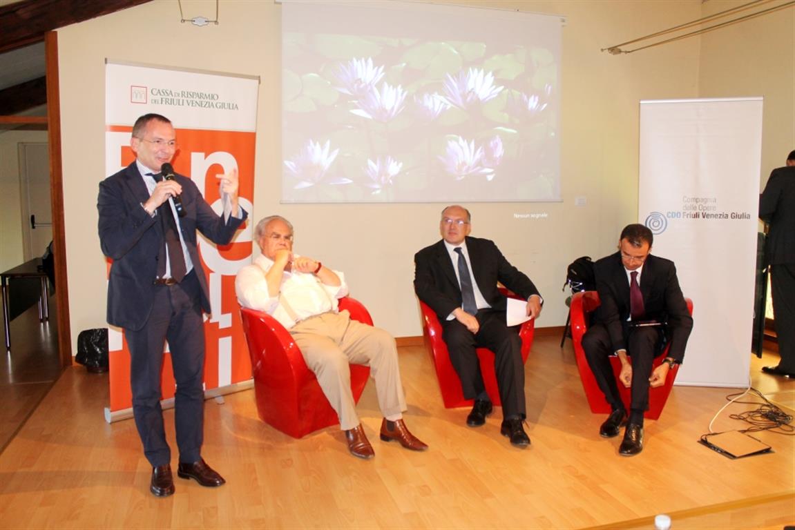 In Medio Friuli ha entusiasmato la platea, parlando di macro economia, con la sudditanza di alcuni Paesi europei nei confronti dell’America dopo il secondo conflitto mondiale, dell’espansione della Cina, della situazione in Russia e in Africa, per giungere alla micro economia con esempi concreti di aziende che sanno aggiornarsi utilizzando strumenti attuali per affrontare il lavoro di oggi e rimarranno in auge solo chi proseguirà nel mutamento, restando al passo con i tempi. Gli sguardi interdetti dei presenti sono stati illuminati quando espresse la sua interpretazione dell’immigrazione, vista come risorsa per l’Italia e per l’Europa.