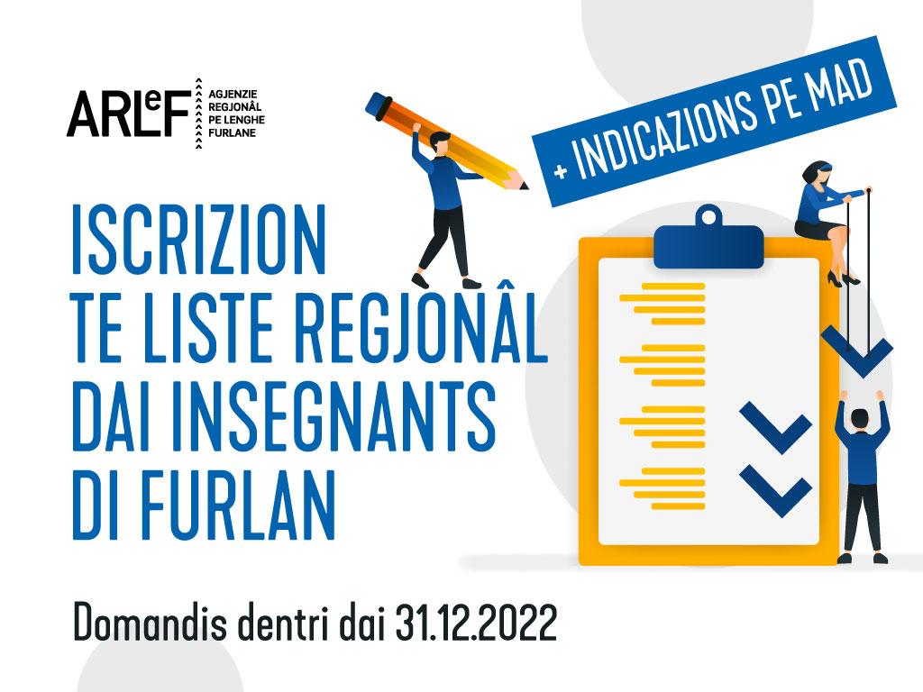 Prosegue l’attività dell’ARLeF-agjenzie regjonâl pe lenghe furlane a favore della certificazione linguistica per la lingua friulana. L’agenzia ha pubblicato un bando, per soli titoli, per la partecipazione al corso-concorso attraverso il quale si punta a individuare i certificatori delle commissioni di esame per attribuire i livelli di conoscenza della lingua friulana in attuazione del quadro comune europeo sulle lingue.