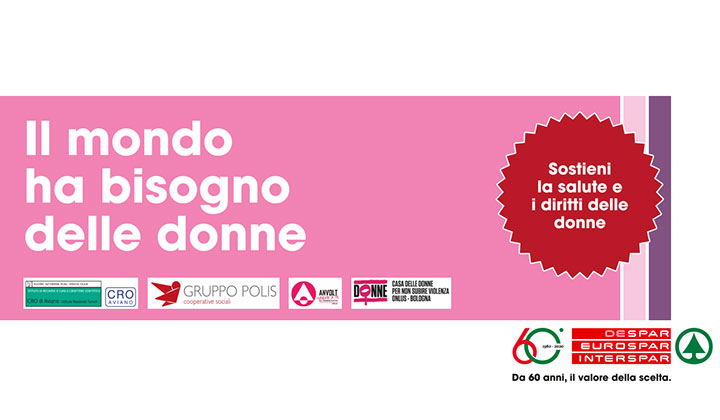 Dal 22 febbraio e in corso “Il Mondo ha bisogno delle Donne” la grande iniziativa di Charity che Aspiag Service realizza in tutti i supermercati Despar, Eurospar e Interspar di Triveneto ed Emilia Romagna in occasione dell’8 marzo.
