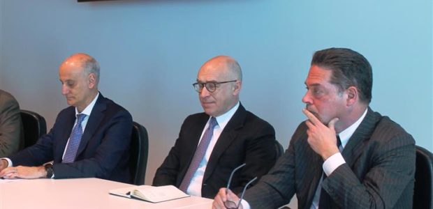 nella foto di copertina da destra: Marco Consalvo, Antonio Marano (direttore e presidente di Trieste Airport) e Renato Ravanelli ( AD del fondo F2i)
