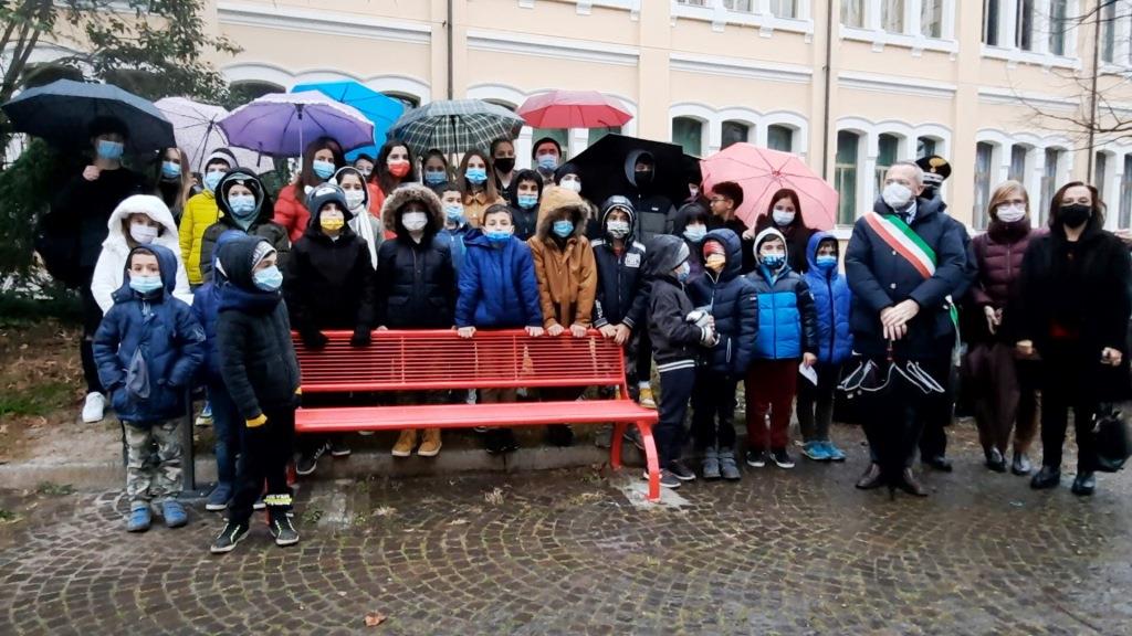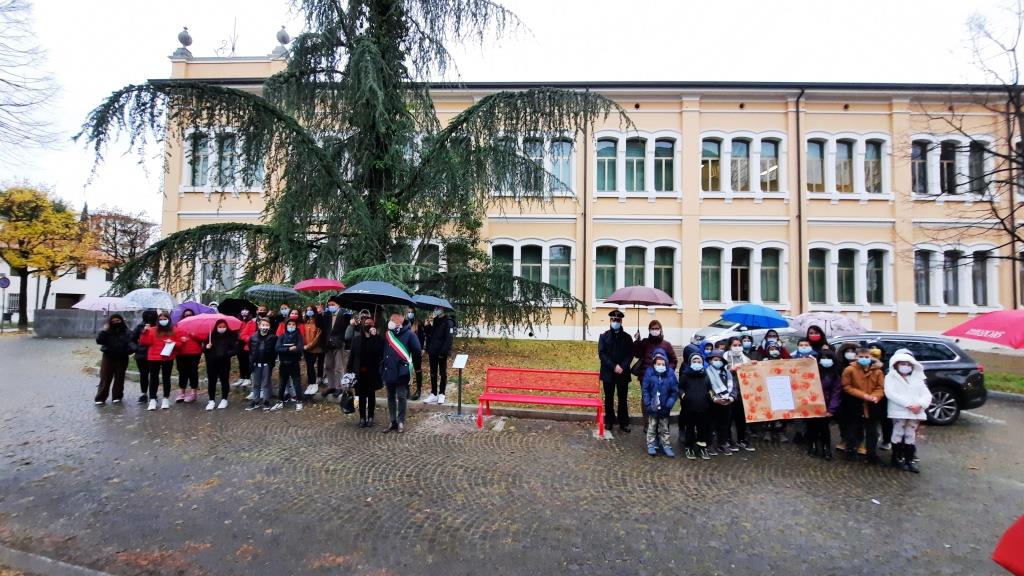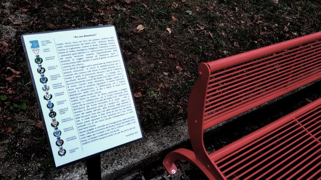 A Codroipo, in piazza Dante, hanno inaugurato una panchina rossa a perenne monito e letto una poesia scritta dai bambini della 4C della scuola primaria Fabris che hanno dipinto la panchina e anche portato uno striscione e i ragazzi della scuola secondaria, facenti parte del Consiglio Comunale dei Ragazzi di Codroipo della scuola media Bianchi, con la Sindaco dei ragazzi che ha letto un componimento redatto dai ragazzi stessi. L’evento era inserito nel progetto Ambito Donna (inserito nel Servizio Sociale Comuni) che con la Scuola Territoriale della Salute STS tutti gli 11 Comuni del Medio Friuli hanno aderito al progetto” Per non dimenticare ” . Portando il tema del rispetto nelle scuole, dall’asilo alle medie ai centri estivi coi ragazzi più grandi.