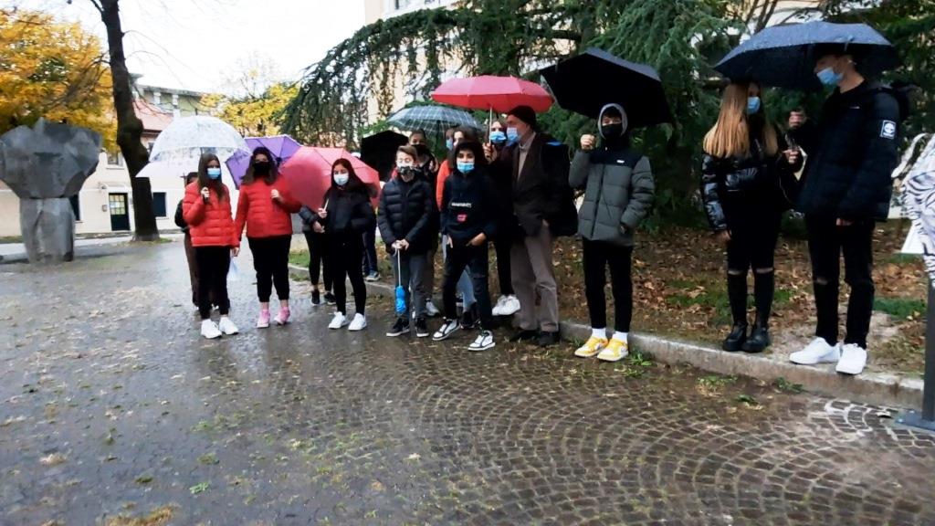 Sotto la pioggia incessante di novembre hanno assistito all’evento tutti i ragazzi con i loro insegnanti e qualche genitore, il gruppo di “Ragazzi si Cresce” (progetto ASP MORO di Codroipo per i centri estivi), gli assessori alla famiglia Fabiola Frizza, alla cultura Tiziana Cividini, la responsabile del servizio sociale dei Comuni del Medio Friuli Anna Catelani, il comandante della Stazione dei Carabinieri maresciallo Luca Cupin e il Sindaco Fabio Marchetti.