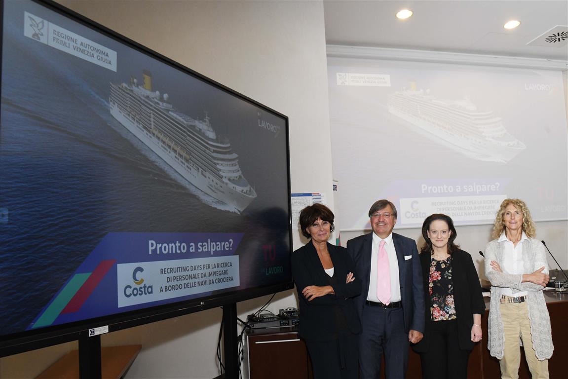 Lo ha detto l’assessore regionale al Lavoro Alessia Rosolen nel corso della presentazione del Recruiting day per il reclutamento di 75 persone da inserire per cinque profili nella flotta di Costa crociere. Presente anche la responsabile per la formazione della compagnia di navigazione Daniela Cimone.