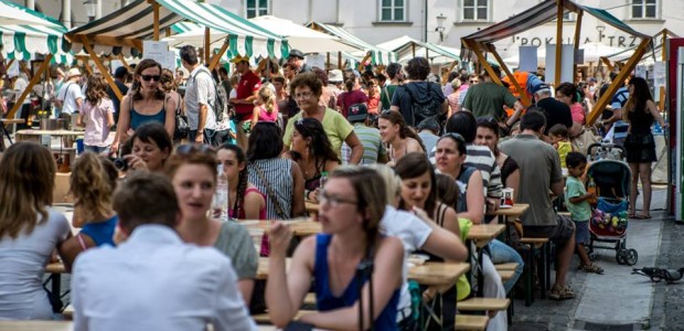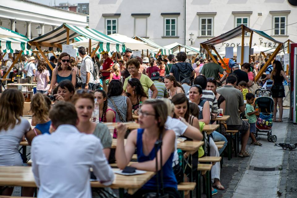 Ogni venerdì da metà marzo a ottobre, nel mercato principale di Lubiana, nel cuore della città e sulle rive del fiume che l’attraversa, turisti ed abitanti incotrano “Cucina aperta”, il mercato delle bontà appena cucinate. Vari chef sloveni preparano dal vivo e propongono i propri piatti sugli stand. Non è solamente una colorita e gustosa vetrina delle tipicità agroalimentari slovene ma anche di cuochi e ristoranti che compongono l’offerta gastronomica di Ljubljana.