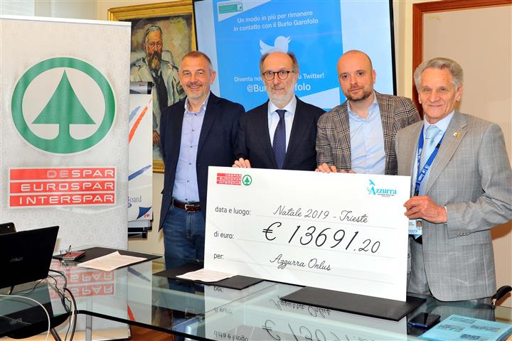 Oltre 420 ore di assistenza sanitaria specializzata gratuita, pari a 13.700 euro raccolti nei punti vendita Eurospar e Interspar del Friuli Venezia Giulia lo scorso dicembre, nell’ambito del tradizionale progetto benefico “Questo Natale regala la Speranza”. all’IRCCS Burlo Garofolo di Trieste, si è svolta la cerimonia di donazione a conclusione del progetto di charity che Aspiag Service – concessionaria Despar per il Triveneto ed Emilia Romagna – ogni Natale dedica al territorio, mettendo in vendita cesti natalizi il cui ricavato viene completamente devoluto in beneficenza.