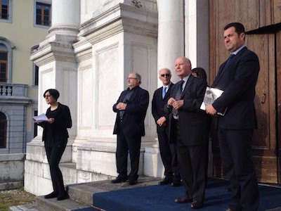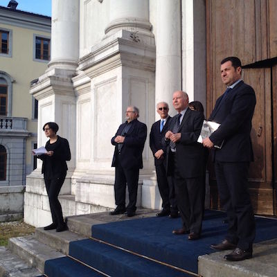 Ricordando che alla riscoperta della nostra identità culturale hanno contribuito le lungimiranti leggi regionali che hanno portato a istituire nel 1971 il Centro per la catalogazione e l’inventario dei beni culturali e ambientali del Friuli Venezia Giulia e, subito dopo il terremoto, il Centro per il restauro, il presidente inoltre ha sottolineato il ruolo della Deputazione di Storia Patria per il Friuli (che dal 1990 al 2000 ha curato le grandi mostre regionali, da quella dei Longobardi a quella dedicata ai Patriarchi) e del Museo Diocesano e Gallerie del Tiepolo di Udine. Fu proprio il Museo, dati i suoi compiti istituzionali, con la collaborazione di studiosi e storici dell’arte giunti anche da fuori regione, a creare all’indomani del terremoto il centro di raccolta delle opere d’arte mobile – dipinti, sculture, oreficerie – recuperate dagli edifici di culto danneggiati; e sempre il Museo ha conservato le opere raccolte, le ha fotografate e catalogate, promuovendone il restauro e la ricollocazione nelle sedi originarie.