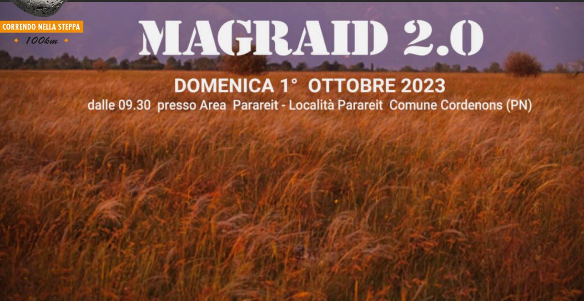 MAGRAID, la suggestiva corsa attraverso i magredi friulani, torna qeust’anno ma in un’edizione particolare. Non si farà la classica ultramaratona di 100 chilometri che si rpende una pausa, sostituita da una “Duathlon nella steppa” dedicata a due Magraider scomparsi , Paolo Di Montegnacco e Daniele De Giorgi, che si terrà il primo ottobre sulla distanza di 3 chilometri di corsa, 10 km con mtb/gravel e 1,5 chilometri di corsa. . Non mancherà una distanza di sola corsa di 6 chilomentri accessibile a tutti, in particolare alle famiglie ,” Magraid in Rosa”, memorial Paola Franzo. Oltre che per onorare la memoria di