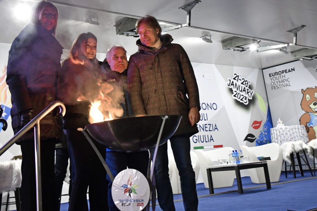 È il messaggio che l’assessore regionale alle Attività produttive  e Turismo, Sergio Emidio Bini, ha portato   a  Lignano Sabbiadoro all’arrivo della Torcia olimpica in occasione dell’accensione del braciere all’ultimo  appuntamento del viaggio della torcia per la XVI edizione del Festival olimpico invernale della gioventù europea,  Eyof 2023 Fvg.