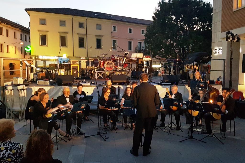 Una grande idea e soprattutto un enorme successo, martedì sera, in piazza Garibaldi a Codroipo, con tantissima gente che oltre a tutti i posti a sedere ha ascoltato la musica rimanendo in piedi o dai tavolini dei bar, affascinata anche dalla magistrale presentazione di Enzo Santese.