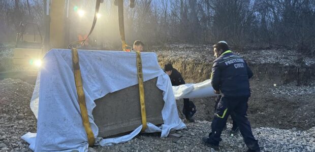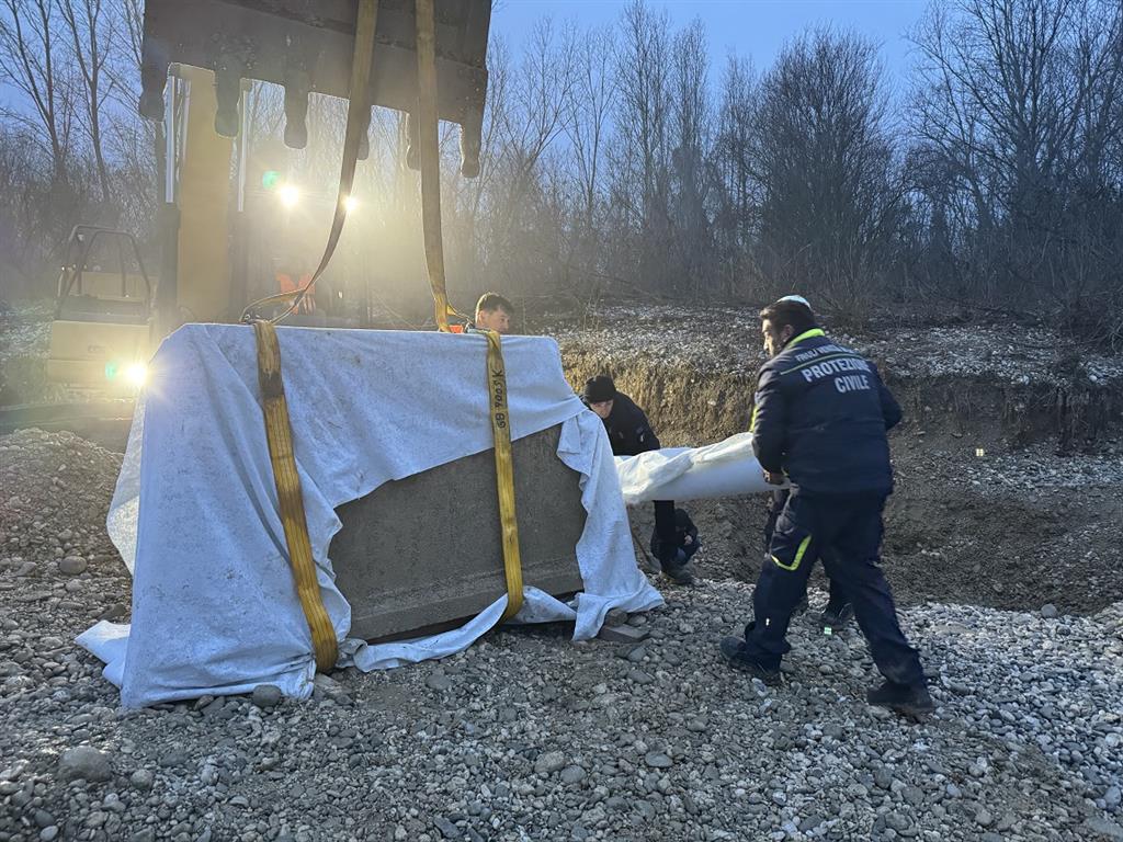 Le operazioni sono state rese possibili grazie al supporto logistico della Protezione Civile regionale e all’aiuto fornito dalla ditta Natison Scavi di San Giovanni al Natisone, che ha messo a disposizione un mezzo pesante che consentisse il sollevamento e il trasporto del reperto.