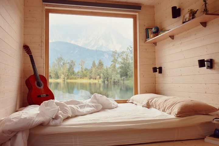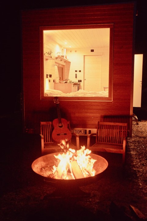 Dispongono di circa 12mq (2,3 x 5,3m) e possono ospitare due persone. Gli interni sono stati progettati con materiali naturali (come l’abete e il rovere) e con un design essenziale privo di elementi superflui. Le ampie vetrate permettono di immergersi e calarsi nell’ambiente esterno.