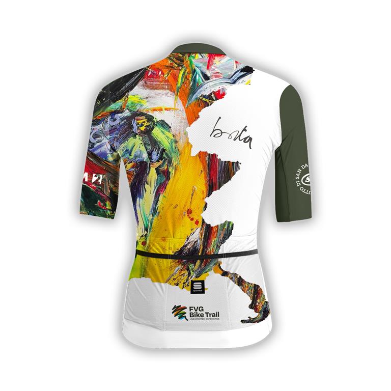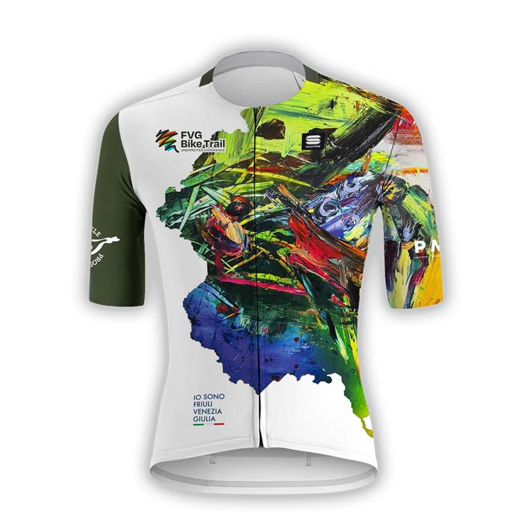 A rappresentare il forte legame tra FVG Bike Trail e il suo territorio, la maglia ufficiale della prima edizione dell’evento porta la firma di un grande artista friulano, il maestro Gianni Borta. Illustre pittore e figura di spicco dell’arte naturalistica italiana, Borta ha trasformato il modello Supergiara Jersey di Sportful (partner tecnico dell’evento) in una tela preziosa dove arte e ciclismo si fondono in un mosaico di colori. Il risultato è una vera e propria opera d’arte, che ha riscosso immediato successo dal pubblico: prodotta in edizione limitata, è già sold-out e, a evento concluso, resterà non solo un bellissimo ricordo dell’evento, ma anche un pezzo icona da custodire gelosamente.