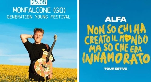 La piazza principale della città farà da sfondo anche al concerto di Alfa – il cantante reduce dal successo sanremese con la canzone “Vai!”, che l’ha consacrato quale rivelazione del Festival, e dai primi posti delle classifiche della scorsa stagione estiva con “Bellissimissima” – che sabato 25 agosto porterà a Monfalcone il suo tour estivo “Non so chi ha creato il mondo ma so che era
