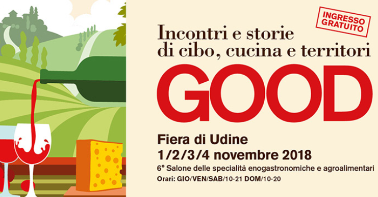 Il cibo è ancora più buono, lo acquistiamo e la prepariamo più volentieri se conosciamo la sua storia e il territorio da cui proviene. Da giovedì 1 a domenica 4 novembre, a Udine Fiere, torna il Salone GOOD con un coinvolgente “racconto” sulle qualità dell’agroalimentare e della ristorazione. È la 6^ edizione, ma per formula, modalità e approccio può definirsi quasi un “debutto”, a cominciare dalla scelta dell’ingresso gratuito, così come gratuite saranno le principali degustazioni e gli incontri con gli ospiti.