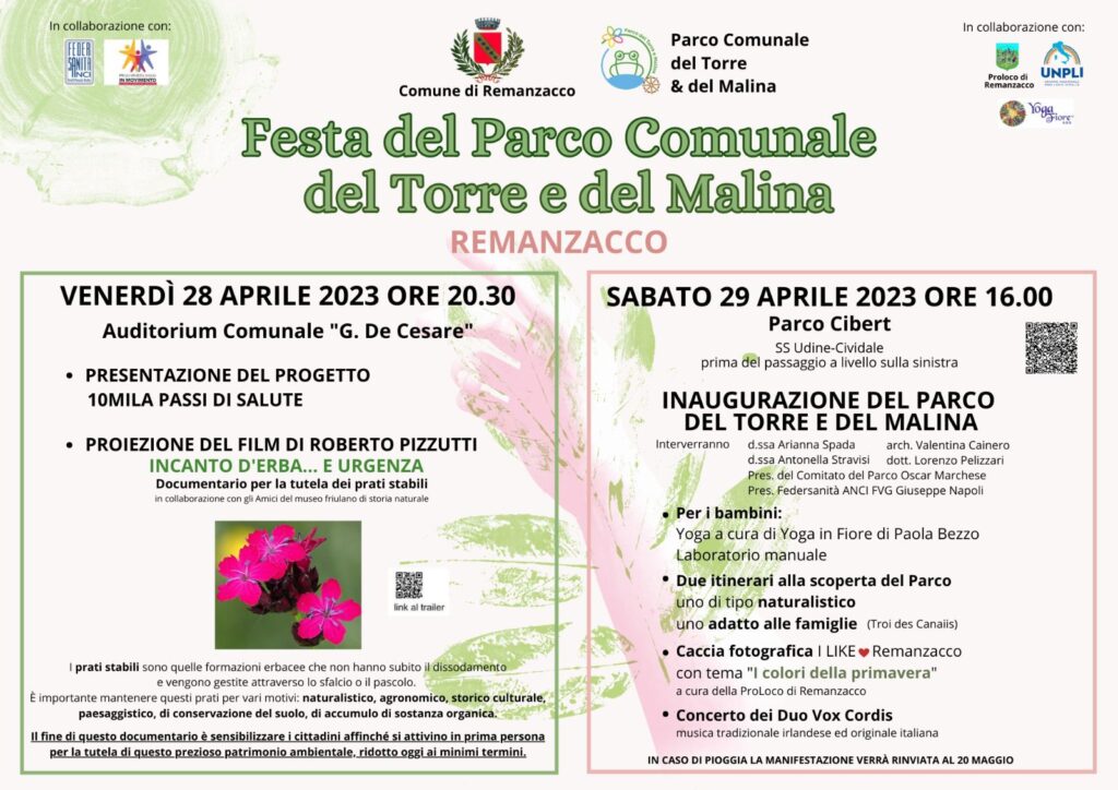 La “Festa del Parco Comunale del Torre e del Malina” si terrà nelle giornate di venerdì 28 e sabato 29 aprile.