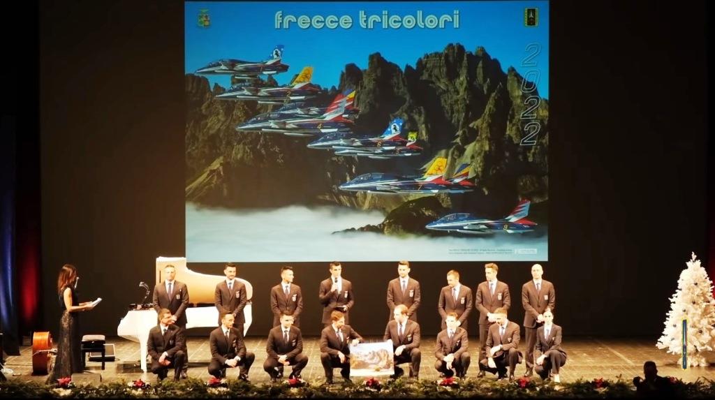 L’Aeronautica Militare la sera ha poi celebrato l’evento di presentazione della formazione acrobatica per il 2022 presso il teatro Nuovo Giovanni da Udine nel capoluogo di provincia, proprio per consentire al maggior numero di persone possibile di partecipare senza rischi di contagio, anche se solo su invito e conferma.