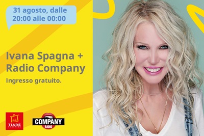Domani mercoledì 31 agosto a partire dalle 20 fino a mezzanotte salutiamo il mese più caldo dell’estate con una straordinaria serata di musica da ballare e cantare tutti insieme. Ad attendervi sul palco ci sono Ivana Spagna e la squadra di Radio Company.