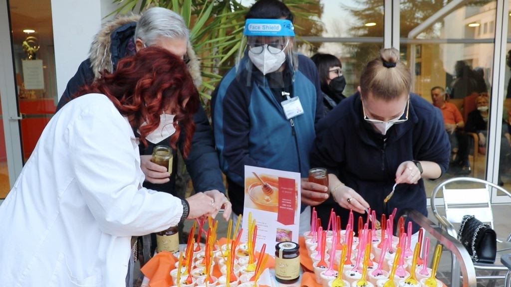Dalle cucine avevano preparato alcune coppette a base di ricotta che, dopo la consegna del miele, sono state completate con il prodotto delle api codroipesi e distribuite agli ospiti e, come sottolineato dal presidente, già ufficiale medico, Giovanni Castaldo, si tratta di un alimento che contiene polifenoli, flavonoidi, alcaloidi, glicosidi e composti volatili. Insomma, un super alimento le cui componenti sono indicate per avere effetti antiossidanti, antimicrobici, antinfiammatori, antiproliferativi, antitumorali e antimetastatici.