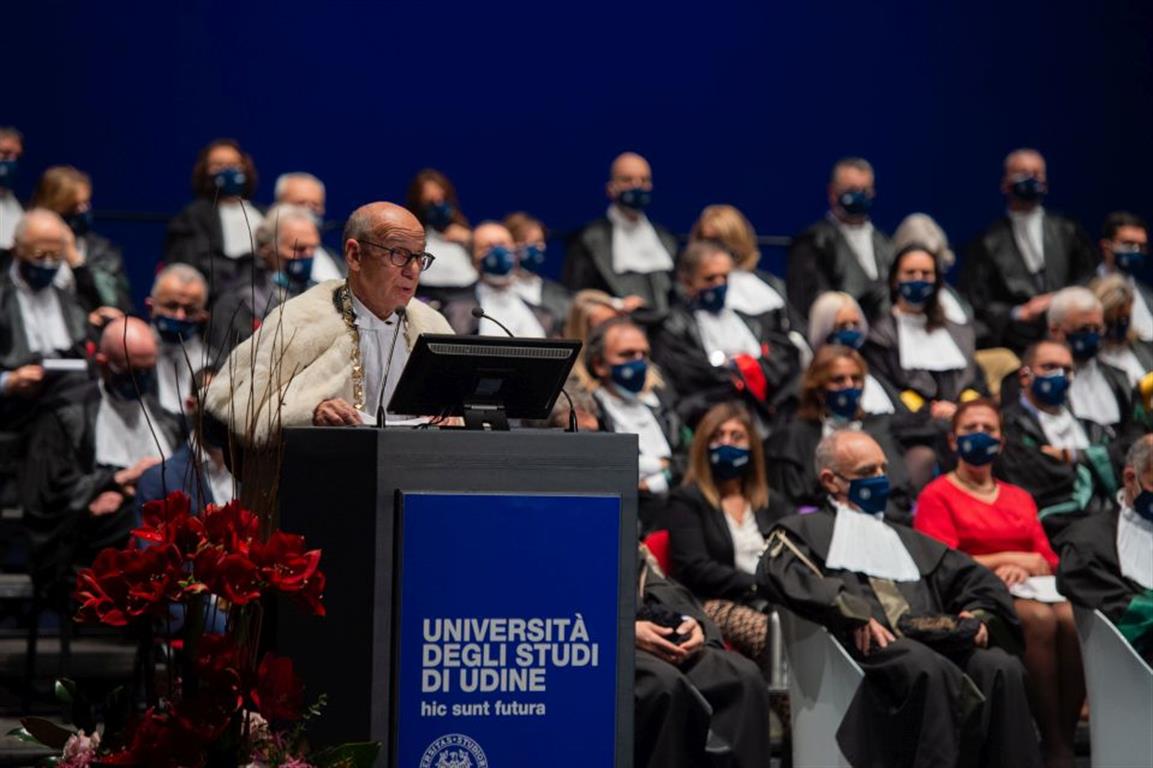 Alla cerimonia hanno portato il loro contributo il Sindaco di Udine, Pietro Fontanini, il Presidente della Regione FVG, Massimiliano Fedriga e il prof. Silvio Brusaferro, docente dell’Ateneo e Presidente dell’Istituto Superiore di Sanità.