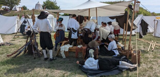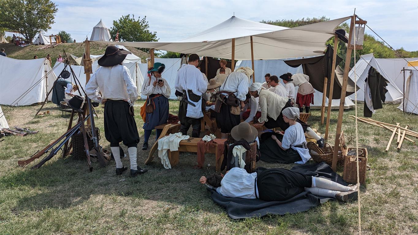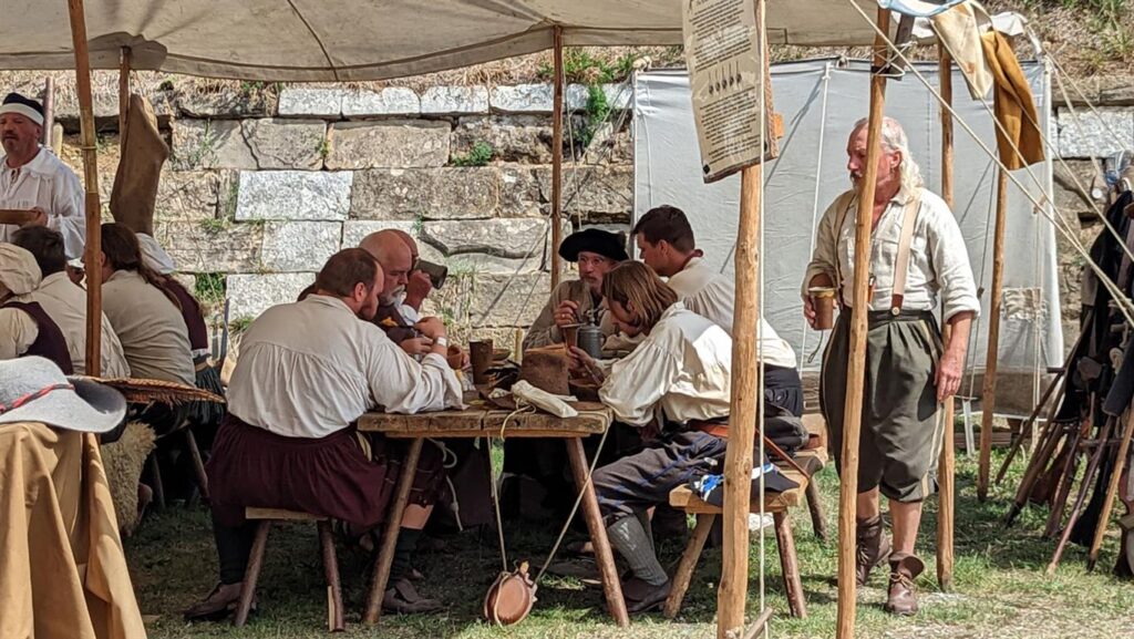 Nelle oltre 300 tende fedelmente ricostruite dell’acccampamento, i vistatori hanno potuto vivere da vicino la preparazione delle truppe ma anche il lavoro degli artigiani, all’opera anche nella cucina secentesca, balli e musiche dell’epoca. Nella Polveriera Garzoni, l’ Emporium Athestinum, con la bottega del mastro cartaio da fogli di carta dagli stracci e la bottega del tipografo, con la stampa a caratteri mobili di Gutemberg.