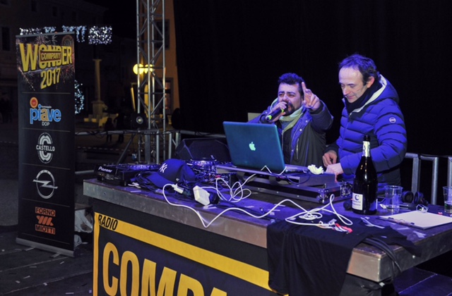 E’ stato indubbiamente segnato da un nuovo grande successo il ritorno di radio Company nella piazza centrale di Palmanova, a distanza di sei mesi dalla performance che, nel luglio dello scorso anno, proprio nella città stellata, apriva il tour estivo di Festival80, in un bagno di folla. E questo si è ripetuto nella festa per il congedo al 2016 e il saluto al 2017 che l’amministrazione comunale di Palmanova ha voluto affidare ai DJ di Radio Company, Stefano Conte e Daniele Belli, con il loro Belli & Conte Show, la versione live della celebre rubrica in onda ogni giorno su Radio Company. I 173 metri di diametro di quella che fu la piazza d’armi di una città fortezza veneziana , hanno accolto le migliaia di persone che hanno voluto brindare al nuovo anno, insieme ad alcuni protagonisti e alla musica di questa seguita emittente radiofonica.