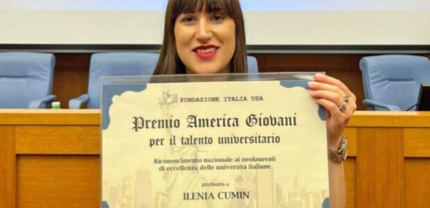 Insignita del premio America Giovani, che ogni anno valorizza mille giovani talenti con un percorso universitario d’eccellenza. Ilenia Cumin, originaria di Romans d’Isonzo e residente a Campolongo Tapogliano, ha ricevuto il riconoscimento in una cerimonia che si è svolta alla Camera dei Deputati a Roma, il 22 luglio scorso. Alla premiata è andata anche una borsa di studio per il master della Fondazione Italia-USA in “Leadership per le relazioni internazionali e il Made in Italy”, diretto da Stefania Giannini, vicedirettore generale dell’Unesco e già Ministro dell’istruzione, università e ricerca. Il Premio America Giovani affianca il Premio America, destinato alle più prestigiose personalità di chiara fama internazionale.