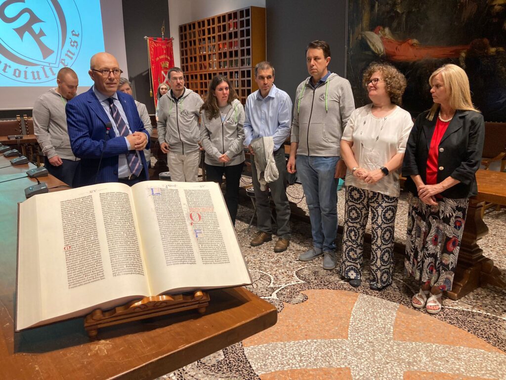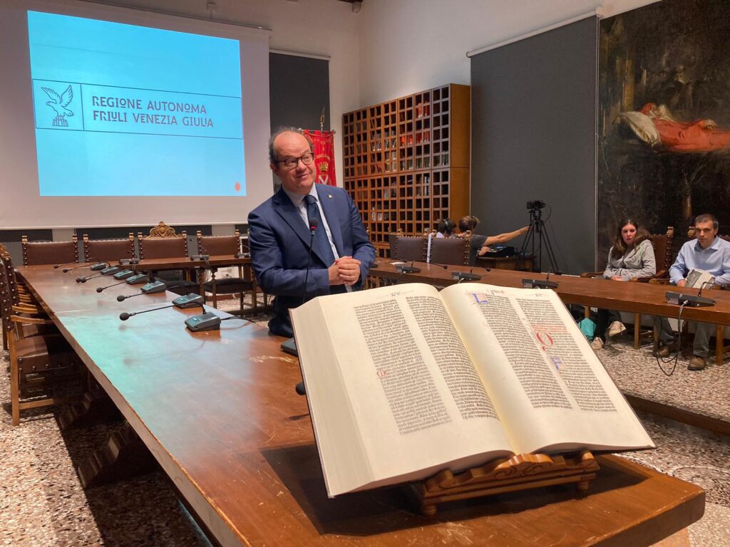 Nella biblioteca Guarneriana di San Daniele è stata presentata una delle sei copie della Bibbia di Johannes Gutenberg, riprodotta dallo Scriptorium Foroiuliense, per ridare vita al primo libro stampato in Europa con la tecnica dei caratteri mobili a 42 linee. Sono solo 22 le copie originali ancora esistenti al mondo delle 180 stampate nella seconda metà del 1400.