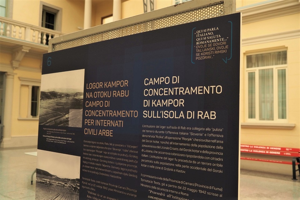Ultimi giorni di apertura della mostra “Qui si parla italiano, qui si saluta romanamente…” organizzata dall’Università di Udine nel Velario di Palazzo di Toppo Wassermann a Udine (via Gemona 92). L’esposizione, visitabile dalle 14 alle 18, è dedicata alla storia e alla memoria dei campi di concentramento fascisti in Italia (Gonars e Visco) e Croazia (Arbe).