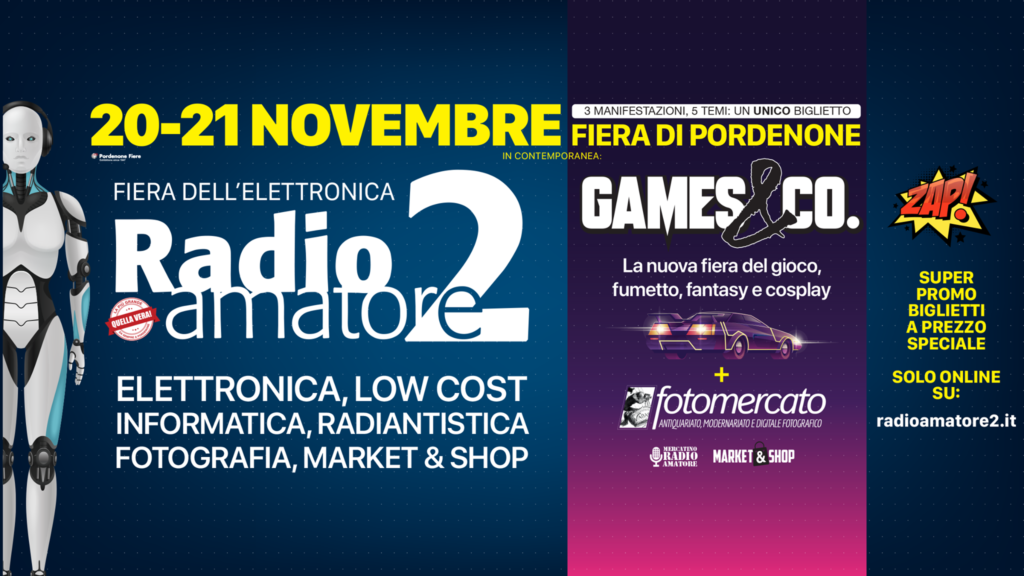 Intorno al Il leitmotiv storico della manifestazione che unisce i radioamatori e gli appassionati di radiantistica di tutta italia e della mitteleuropa, è cresciuto un ecositema che è il paradiso dell’elettronica, dell’informatica, dell’hifi, della fotografia, del software, del video games. Un grande appuntamento di confronto, di scambio, e di innumerevoli opportunità per il collezionismo e per gli affari low cost che si rinnova a Pordenone, sabato 20 novembre (dalle 9.00 alle 18.30) e domenica 21 novembre 2021 (dalle 9.00 alle 18.00), in sei padiglioni, 2 km e mezzo di banchi espositivi, con oltre 200 aziende presenti, dove si possono trovare gadget, prodotti ed accessori di tutti i tipi, dagli smartphone ai computer, dai tablet alle luci a led al materiale elettronico ed elettrico.