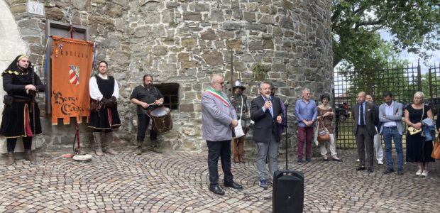 Un rullo di tamburi ha accompagnato la suggestiva cerimonia di riapertura del castello di Gorizia dopo tre anni di chiusura. In realtà, quella del mattino, avrebbe dovuto essere una preview per i giornalisti e per poche autorità ma, alla fine si sono mescolati anche turisti e curiosi ed è stata subito festa con selfie insieme ai rievocatori e alle dame e i passaggi da una sala all’altra per sperimentare le nuove installazioni multimediali.