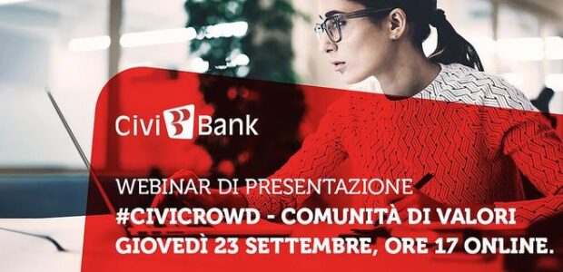 Dopo il successo della prima edizione, CiviBank lancia la seconda edizione di CiviCrowd – Comunità di Valori, il progetto di fundraising per il terzo settore realizzato in collaborazione con Idea Ginger, piattaforma di crowdfunding con il più alto tasso di successo in Italia, per imparare come organizzare una campagna di raccolta fondi “dal basso” di successo, come comunicarla e farla conoscere al pubblico e come instaurare un rapporto duraturo con i sostenitori. Giovedì 23 settembre, alle ore 17, si terrà un webinar di presentazione del progetto che, dal suo avvio a inizio 2021, ha permesso di portare a termine le campagne di 6 realtà del terzo settore, che hanno raccolto donazioni di 600 sostenitori per complessivi 54mila euro.