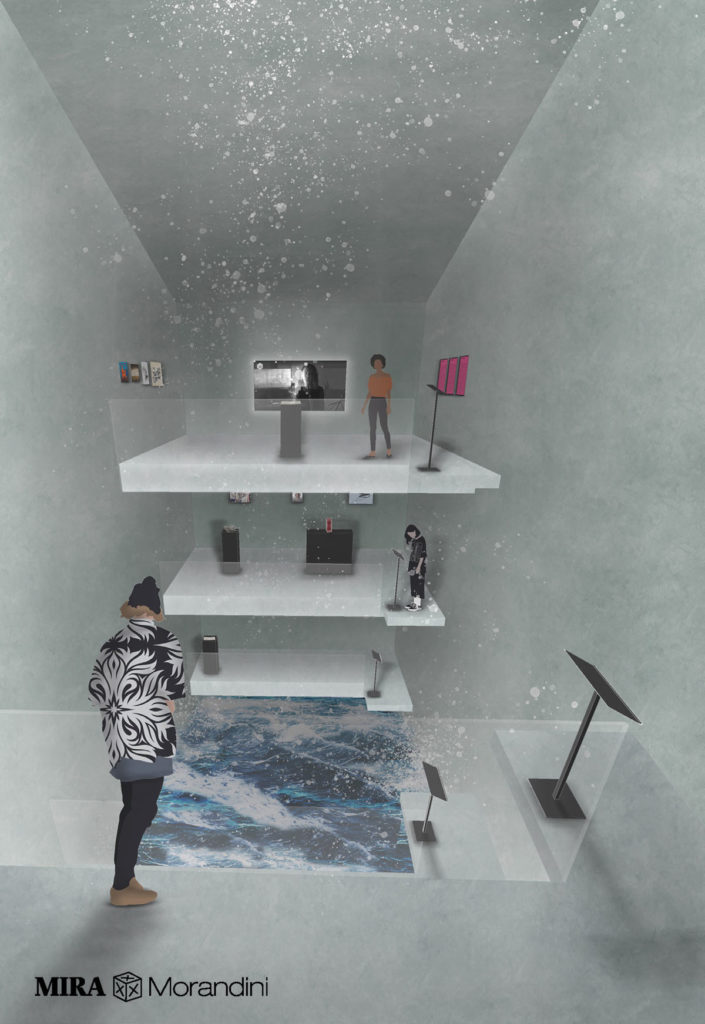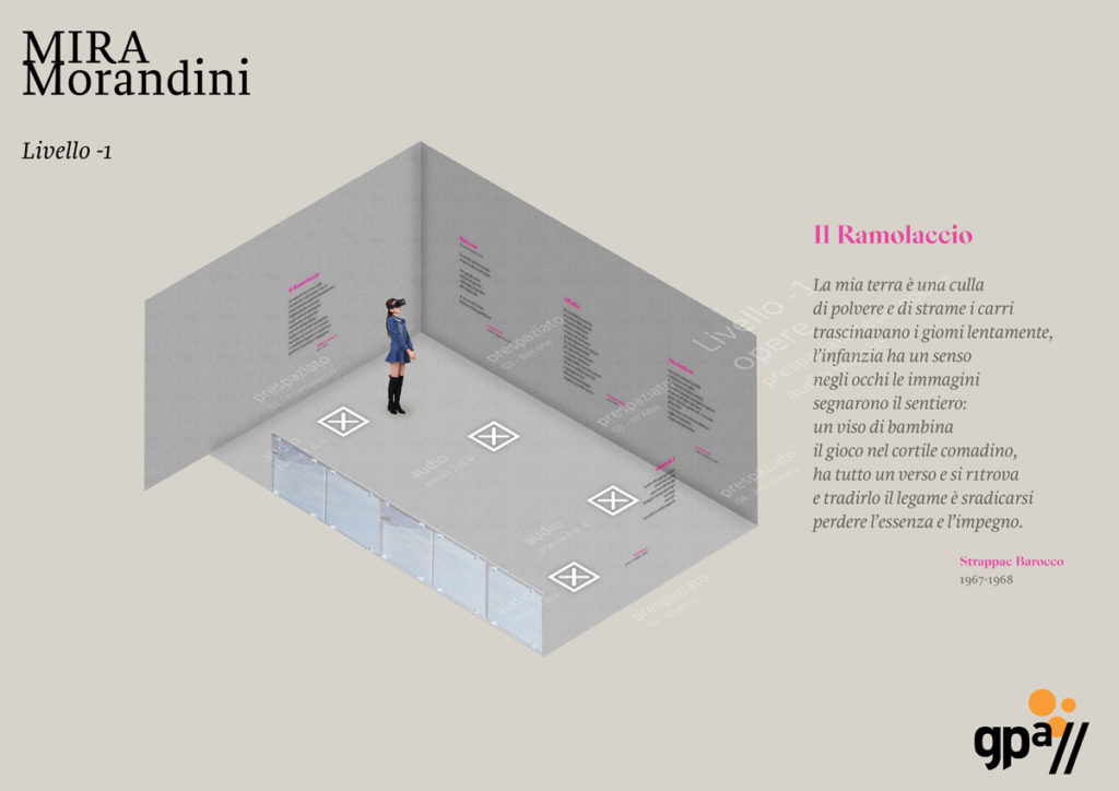 Il Museo Interattivo in Realtà Aumentata Morandini è un’esperienza unica, in cui il visitatore si immerge in un mondo che non segue le stesse regole di quello reale, dove elementi fisici esistenti ed elementi virtuali si compenetrano e si integrano a vicenda. Lo spazio reale, indossato il visore, si moltiplica in altezza generando ulteriori piani che a loro volta si dividono, si allontanano tra loro e si dilatano, ampliandosi nello spazio virtuale, per creare un emozionante spazio centrale.
