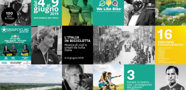 “We Like Bike” è la settimana di eventi cicloturistici, dal 4 al 9 giugno, che la Pro San Daniele e l’Unione Ciclisti San Danielesi, dedica agli appassionati della bicicletta, sia da diporto che agonistica,  e del turismo slow. Prende spunto dal territorio, che offre una straordinaria rete di percorsi cicloturistici, di cui 16 sono stati inseriti nel programma delle escursioni.  “We like bike” è anche  una sfida tra campioni, tra promesse del ciclismo ma  anche un ripercorrere la storia del grande ciclismo, attraverso cimeli e testimonianze.
