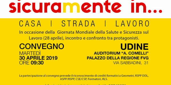 L’incontro è patrocinato dal Ministero della Salute, Regione Autonoma Friuli Venezia Giulia, Comune di Udine, Confindustria Udine, Università degli Studi di Udine, Università degli Studi di Trieste, Ordine dei Consulenti del Lavoro, AIFOS – Associazione Italiana Formatori ed Operatori della Sicurezza sul Lavoro, Fondazione Italia Loves Sicurezza, con la collaborazione del Collegio dei Geometri e dei Geometri Laureati della Provincia di Udine.