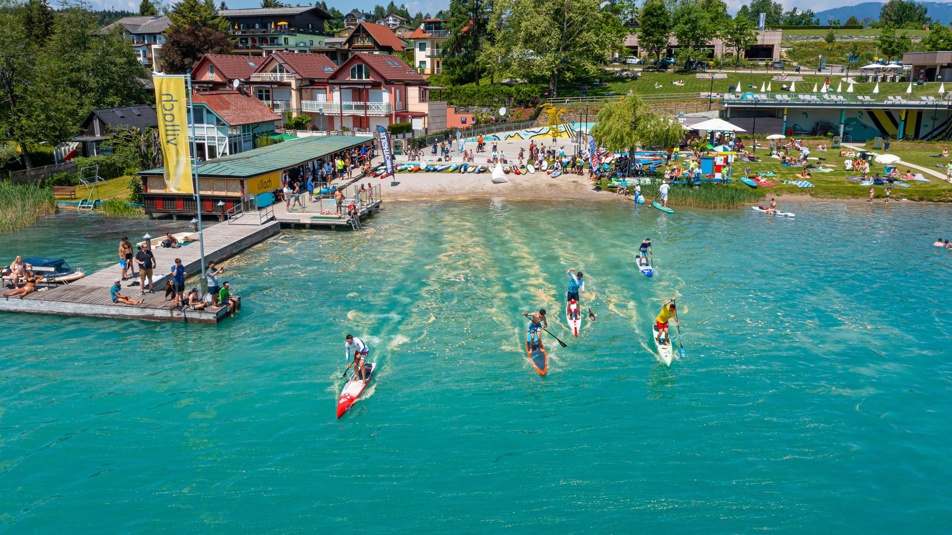 Presso lo Strandcamping Gruber, dove si svolge l’evento principale, ci sarà un’area prendisole di 6.000 mq che diventerà il SUP Village: l’area della riva sarà la partenza e l’arrivo delle gare. I partecipanti avranno l’opportunità di vedere e testare i prodotti più recenti di vari marchi di abbigliamento ed equipaggiamento per SUP presso l’expo allestito nel quartier generale. Per i giovani canoisti sotto i 16 anni non è prevista alcuna quota di partecipazione in tutte le gare. Il festival prevede anche una giornata dedicata ai campioni di domani, con corsi gratuiti di SUP (letteralmente Stand Up Paddle) per imparare dai migliori nel SUP Village. Inoltre, l’esperta di SUP yoga Beate Egger offre sessioni gratuite sull’acqua turchese del lago.