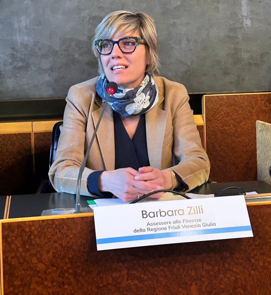 L’assessore regionale alle Finanze Barbara Zilli alla presentazione a Gemona in municipio