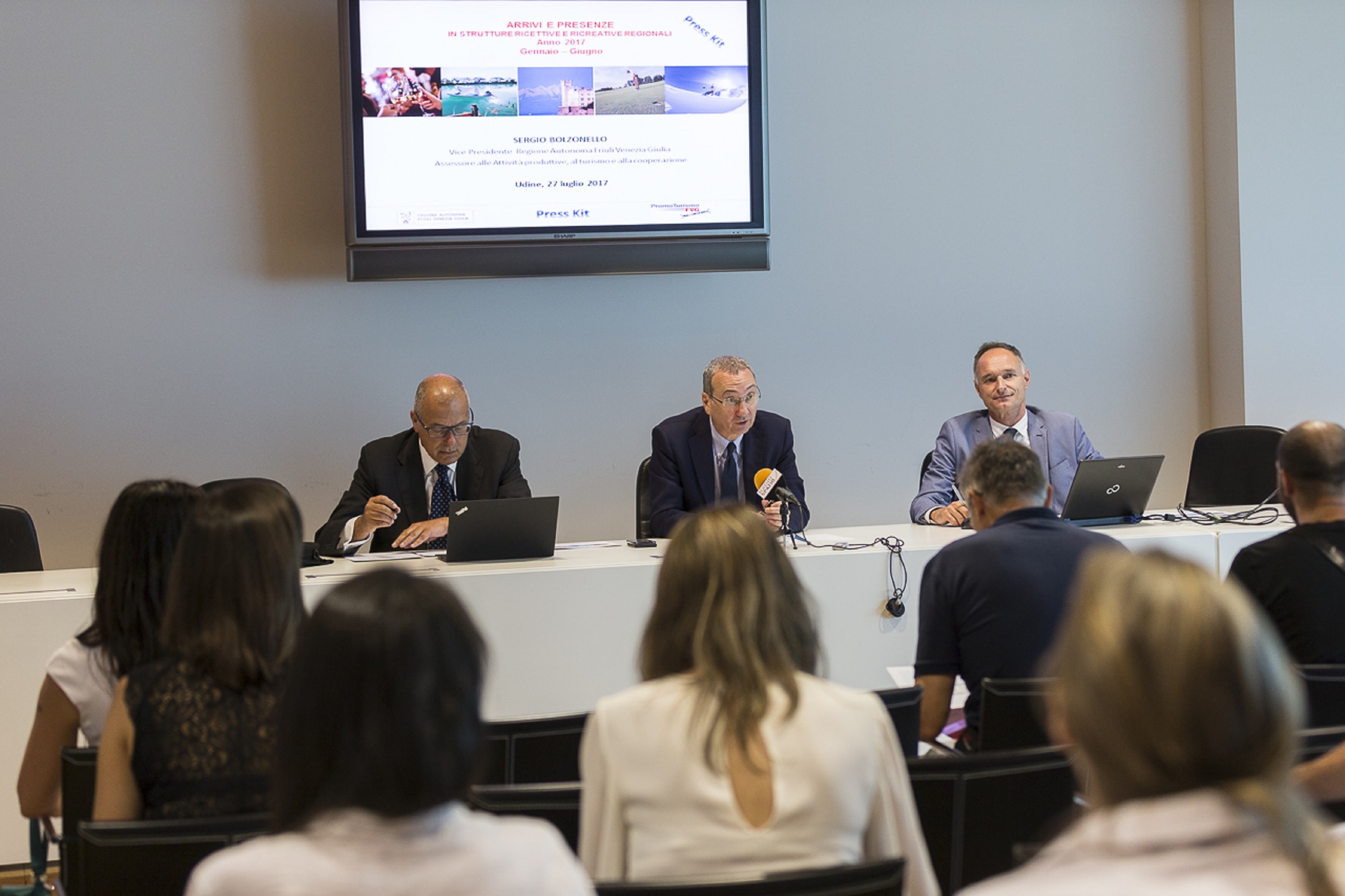 70378_conf_dati©fabrice_gallina2017-0547-minIl Friuli Venezia Giulia, esibisce  nel mercato dei visitatori stranieri, gli austriaci  al primo posto in numeri assoluti ,con un più 19,3 per cento negli arrivi e un più 16  per cento nelle presenze, ma sono i tedeschi, in numeri assoluti al secondo posto, che ottengono  la variazione più consistente rispetto al 2016 con un più 21 per cento negli arrivi e ben il 30 per cento in più nelle presenze. Seguono, sempre  con incrementi a due cifre, Slovacchia e Repubblica ceca  (più 17 per cento) , Russia  (più 31.6  per cento di arrivi) , Spagna (più 21 per cento), Ucraina (più 24). Rispetto agli arrivi generalmente  le presenze sono più contenute  ma sempre di segno positivo, in molti casi a due cifre. In certi casi l’incremento di  presenze è superiore agli arrivi come per Germania,svizzera e Slovacchia.