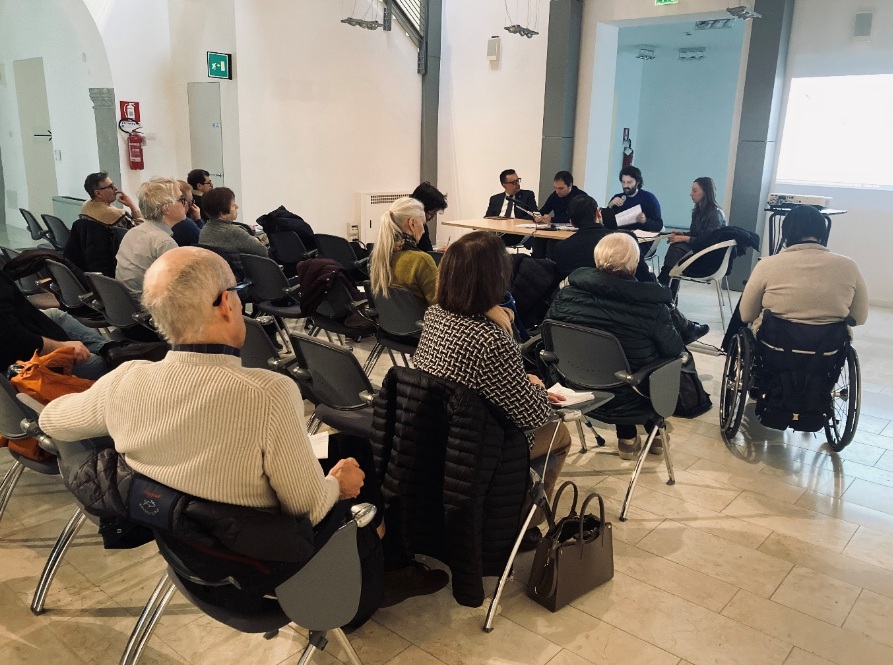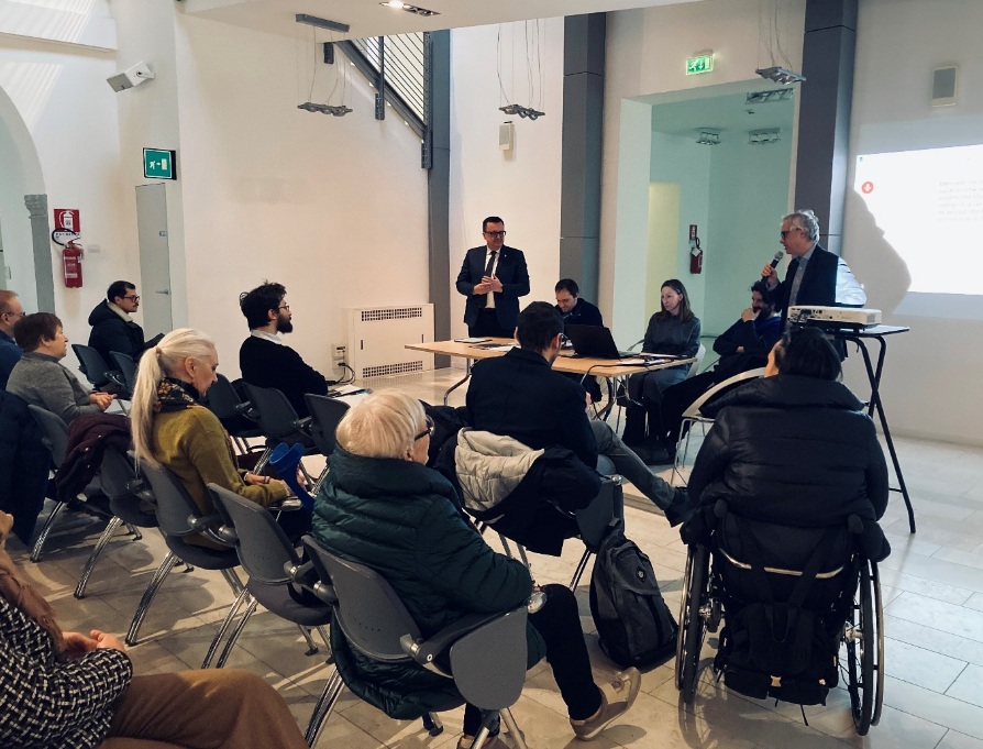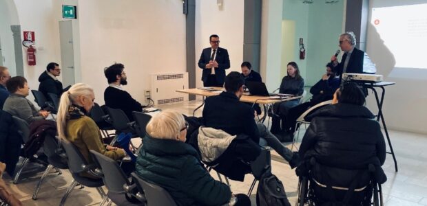 A fine febbraio, presso Casa Cavazzini, si è tenuto il primo incontro partecipativo alla presenza degli assessori Andrea Zini (pianificazione territoriale) e Ivano Marchiol (lavori pubblici) e delle principali associazioni dei portatori di disabilità motorie, cognitive e sensoriali, di un rappresentante del CRIBA (Centro Regionale di Informazione sulle Barriere Architettoniche del FVG), e dei referenti dei Consigli di Quartiere Partecipati. Erano presenti all’incontro anche la progettista Claudia Carraro e l’architetto Gregorio Grasso dello studio Supernova Design Group.