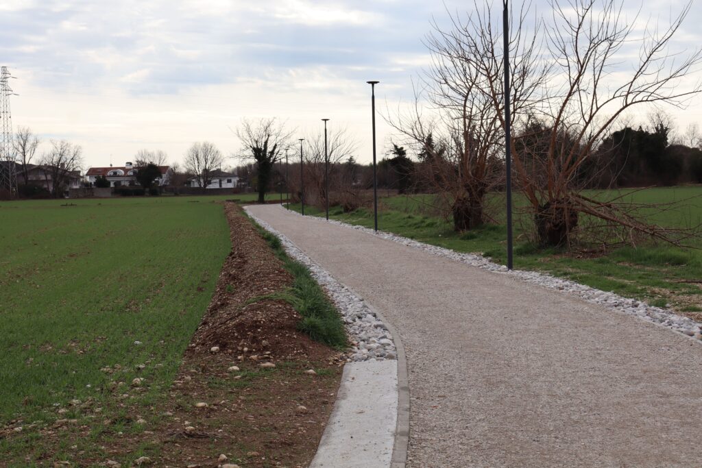 A questo percorso si è poi collegata la seconda opera, che ha esteso il percorso ciclabile lungo via Zugliano, via Campoformido e via Carlino, fino alla Strada Vecchia di Terenzano, arrivando all’area retrostante il parco di Sant’Osvaldo. Questo intervento non solo collega importanti poli educativi e ricreativi come l’Isis Malignani e il giardino didattico, ma garantisce anche una mobilità sicura per le nuove aree residenziali della zona. Il percorso lungo la Strada Vecchia di Terenzano, realizzato con un fondo naturale compattato e dotato di illuminazione a LED, costituisce inoltre un’opera di rigenerazione a tutto tondo: permetterà di utilizzare, anche nelle ore serali un tracciato ciclopedonale immerso nel verde, sicuro e fruibile, laddove prima era presente solo una strada sterrata spesso interessata da fenomeno di abbandono rifiuti.