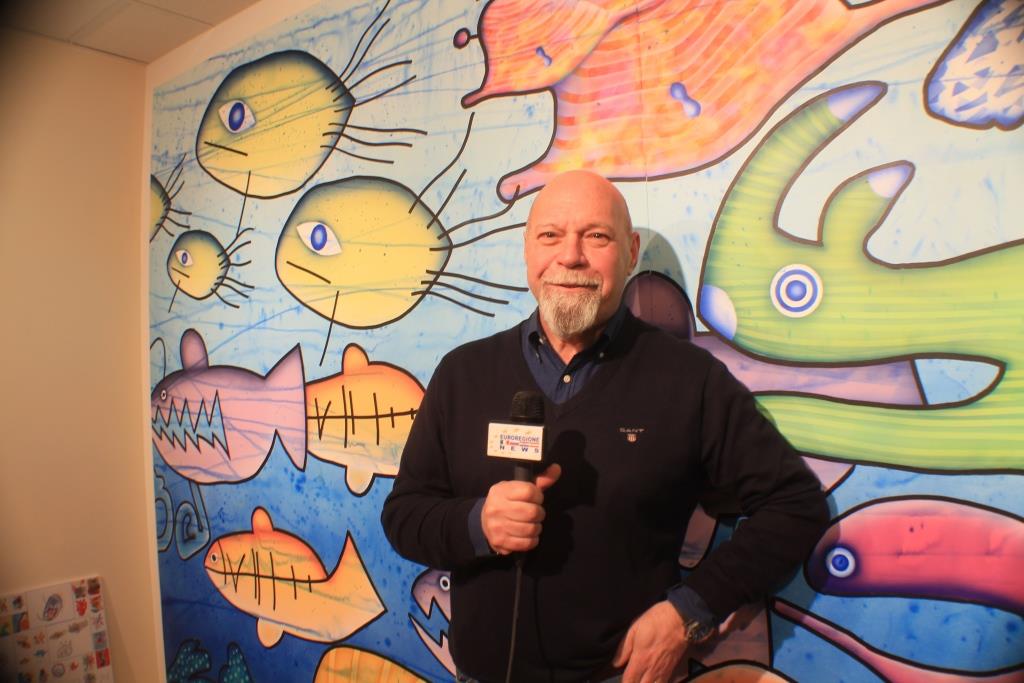 La gioia negli occhi di tutti divenne emozione in Gianni Maran che sebbene abituato alle esposizioni pubbliche delle sue opere, questa volta si trattava di una realizzazione che esce distintamente dai suoi canoni, quasi irriconoscibili, le sue pennellate, giacché pur mantenendo i soggetti che lo riportano alla sua isola di Grado, lui ha svolto solo il compito di riprodurre le singole opere dei giovani pazienti in un’unica grande tela, ma il risultato è meraviglioso. Giustificato il suo orgoglio quando ha riscontrato di aver lasciato esterrefatti tutti i presenti. L’utilizzo di colori brillanti, accesi, surreali, che rendono i suoi quadri più belli della realtà, in questo caso hanno seguito solo l’immaginazione e la spontaneità dei piccoli artisti.