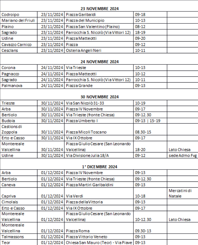 L’elenco delle postazioni è disponibile sul sito www.admo.it nella pagina dedicata alla campagna del Natale 2024.
